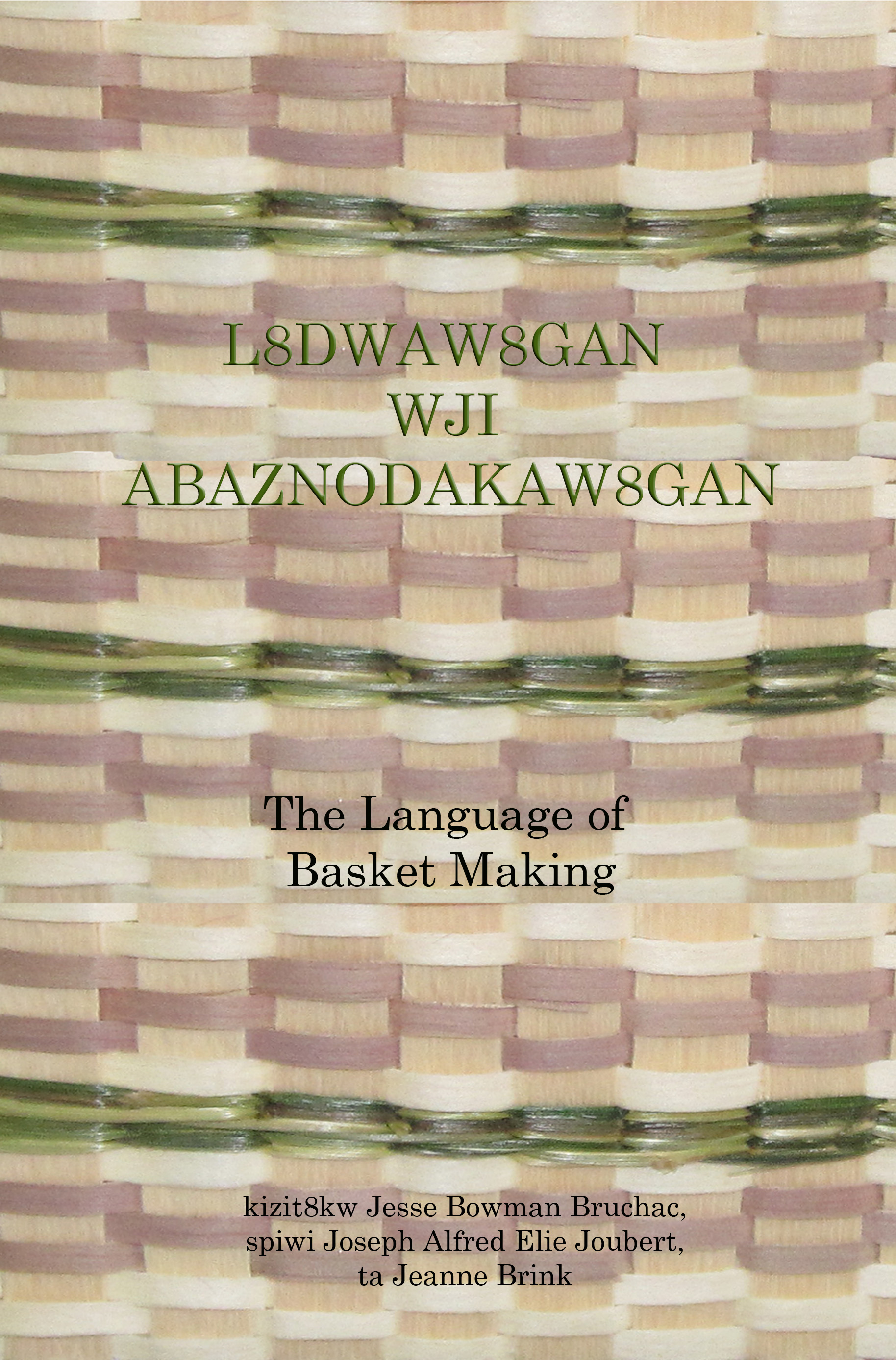 Denise and Paul Pouliot often collaborate with other Abenaki artisans and have even spoken of creating an Abenaki Artisan Collaborative ("Abenaki Artisan Collaborative."). The collaboration also includes other areas of Abenaki culture. The cover  (Shown Below) of the language book, L8dwaw8gan Wji Abaznodakaw8gan: The Language of Basket Making by Jesse Bruchac, is a photograph of one of Denise Pouliot's baskets who was honored to have it included ("Book Review" 14). Pouliot has also participated in various Abenaki language camps that combine both language and baskets: "As part of the language camp, each afternoon was dedicated to ash splint basket making ("Abenaki Language Camp" 6). The students of the language camp also learned various basket making terms. For example, ida ni aln8ba8dwa means basket making and abaznodaal means a basket made of ash (Bruchac 12). By using basketmaking terms in Abenaki, the language camps combine two aspects of Abenaki culture that were once in danger of being lost. The many Abenaki basket makers and students of language that go to these events make that no longer the case. These language camps accomplish a variety of goals. First, they generate an interest in speaking the Abenaki language (Pouliot, "Abenaki Language Camp" 6).  Second, they bring attention to basketmaking as a way of learning a language and illustrate that they are both linked together in Abenaki culture (6). Third, they foster a sense of community amongst those of Abenaki heritage and encourage the younger generations to get excited about their culture (6).